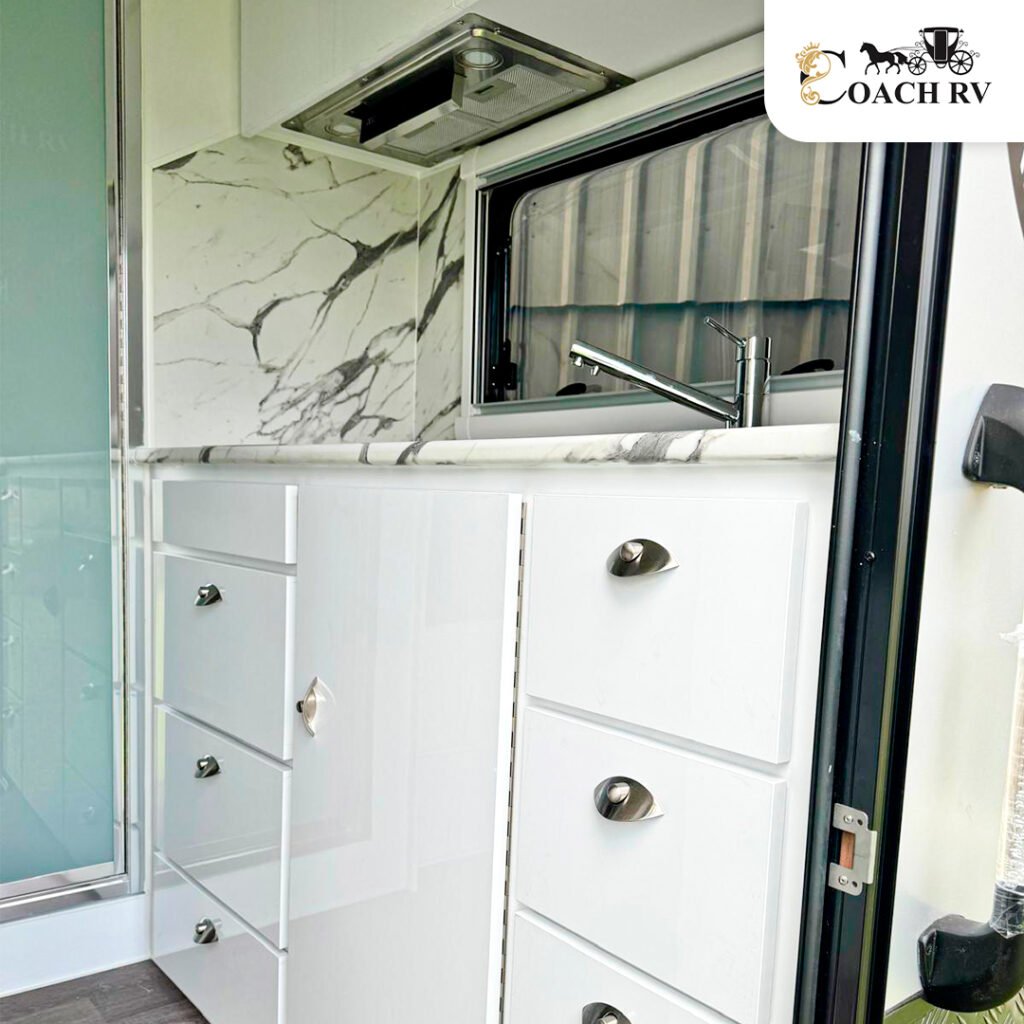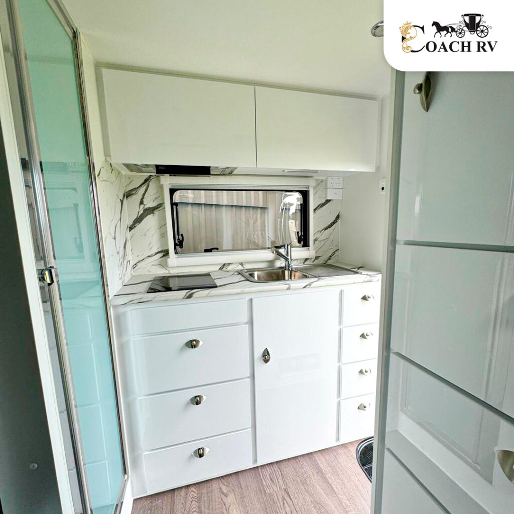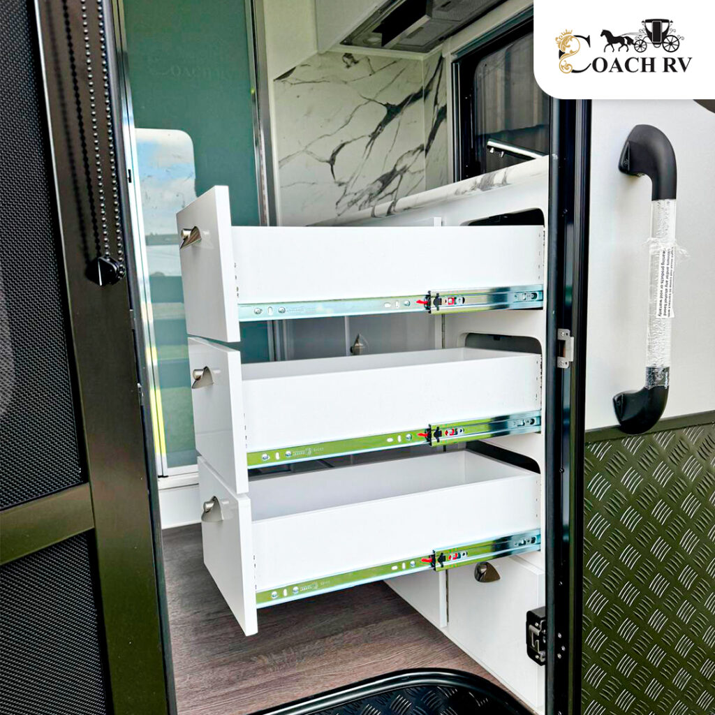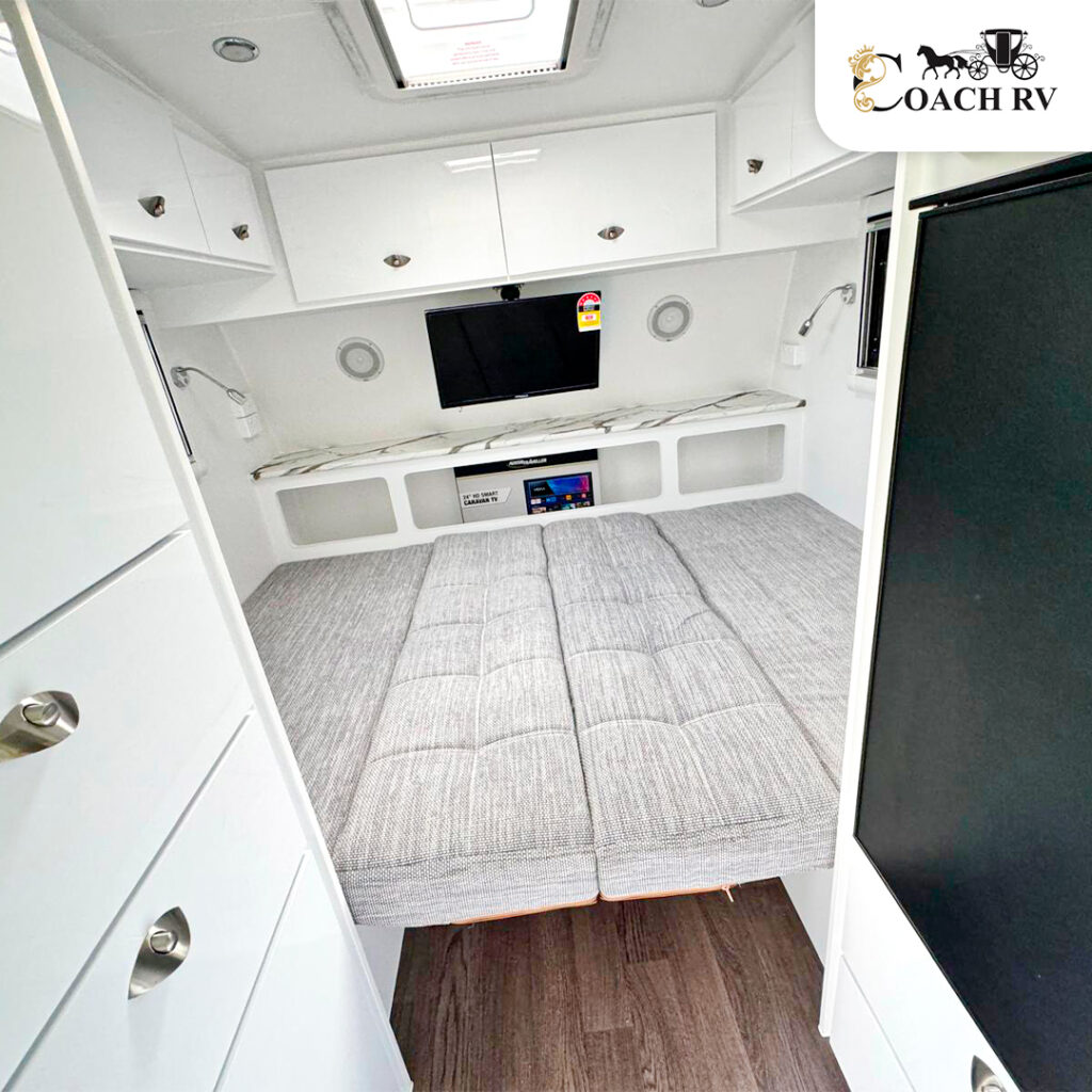 1 x rear robe next to bunks with shelves (Only in Bunk vans)