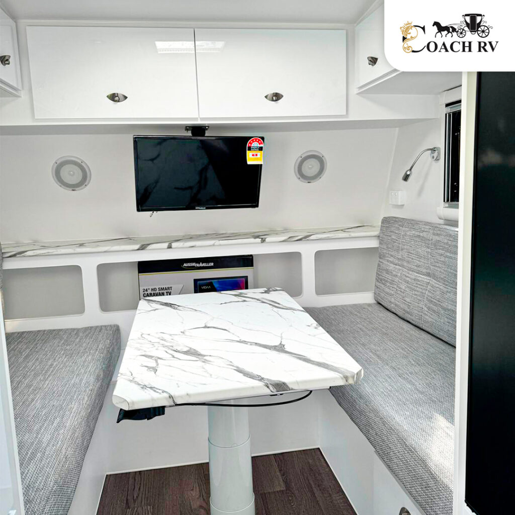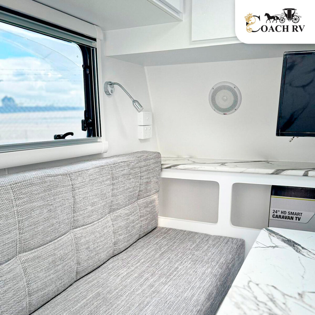 Vinyl – lounge, queen bedhead, bunk side rails, bunk ends with pockets, head bump over door